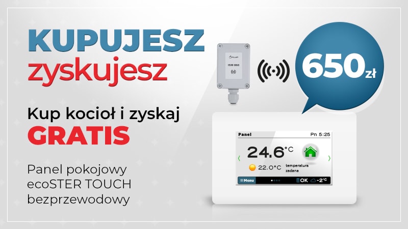 Skorzystaj z naszej promocji! Kup kocioł wyposażony w palnik Platinum Bio VG i otrzymaj panel pokojowy ecoSTER Touch bezprzewodowy GRATIS.